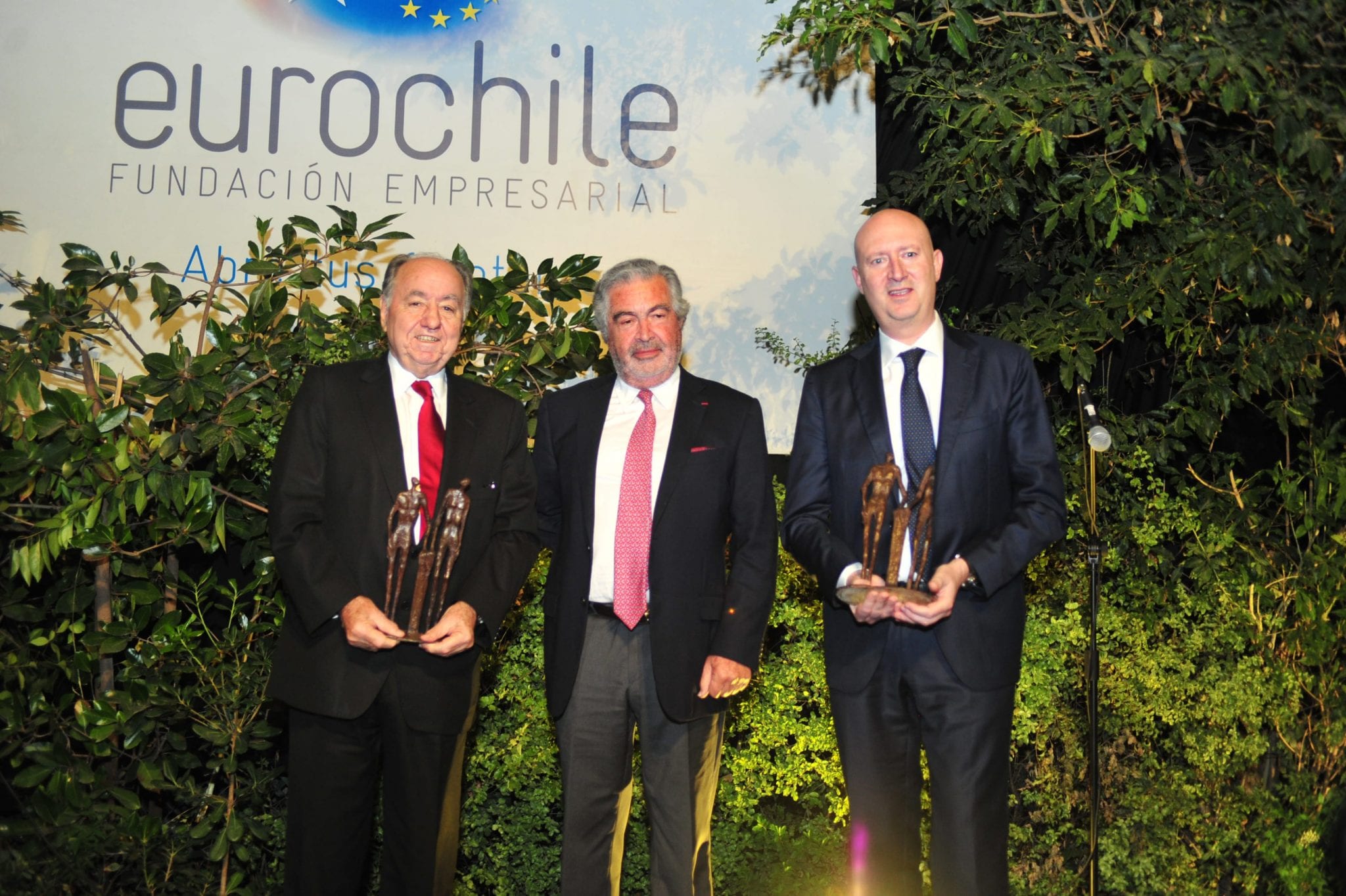 Ambos homenajeados recibieron de la mano de Vicente Caruz, presidente de Eurochile, la escultura llamada Hombres-Puente, de la artista visual chilena Pilar Landerretche. “Estos candidatos tienen una trayectoria muy grande, vasta y matizada”, señaló Caruz al entregar la pieza, quien aprovechó la ocasión para señalar que hoy los desafíos de la fundación apuntan al traspaso de tecnología de punta a las pymes, la incorporación de la economía circular y el impulso a la innovación.